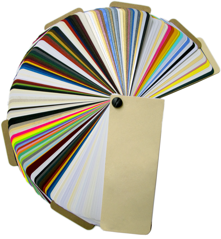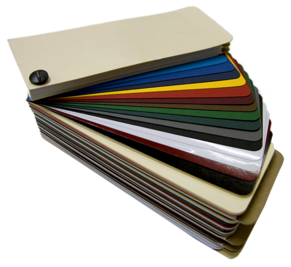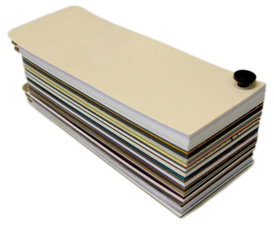 materiály určené k výrobě a ke kompletaci vzorníku se naděrují a zkompletují pomocí knihařského šroubu, lze je opatřit papírovým krycím listem a papírovým přebalem s Vaší grafikou (logo, kontaktní údaje, výrobní zaměření apod.)