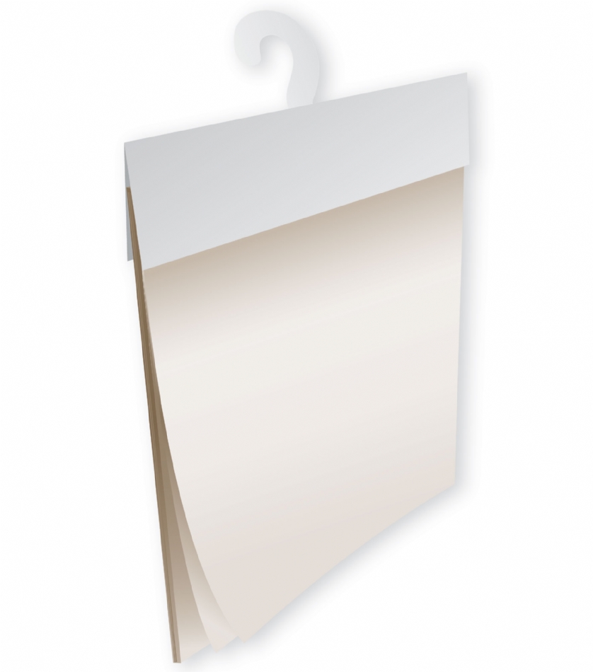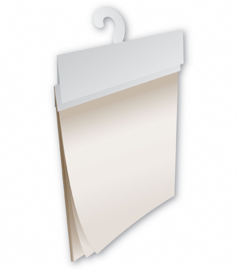 složené ze dvou částí – vnější část je z jedné strany opatřena samolepkou a z druhé strany je možné ramínko potisknout libovolnou grafikou (logo, kontaktní údaje, výrobní zaměření apod.), vnitřní část se použije na upevnění materiálů určených ke kompletaci pomocí kovových skobiček a následně se vlepí do vnitřku vnější části, ramínko je opatřené bílým plastovým háčkem k zavěšení